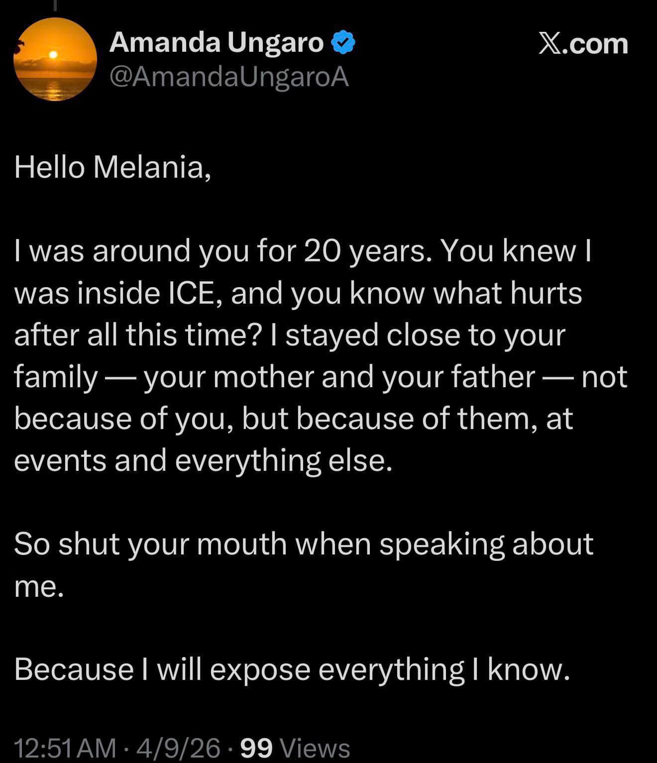 Before the White House statement landed, a post from Amanda Ungaro was already circulating. Ungaro addressed Melania directly: